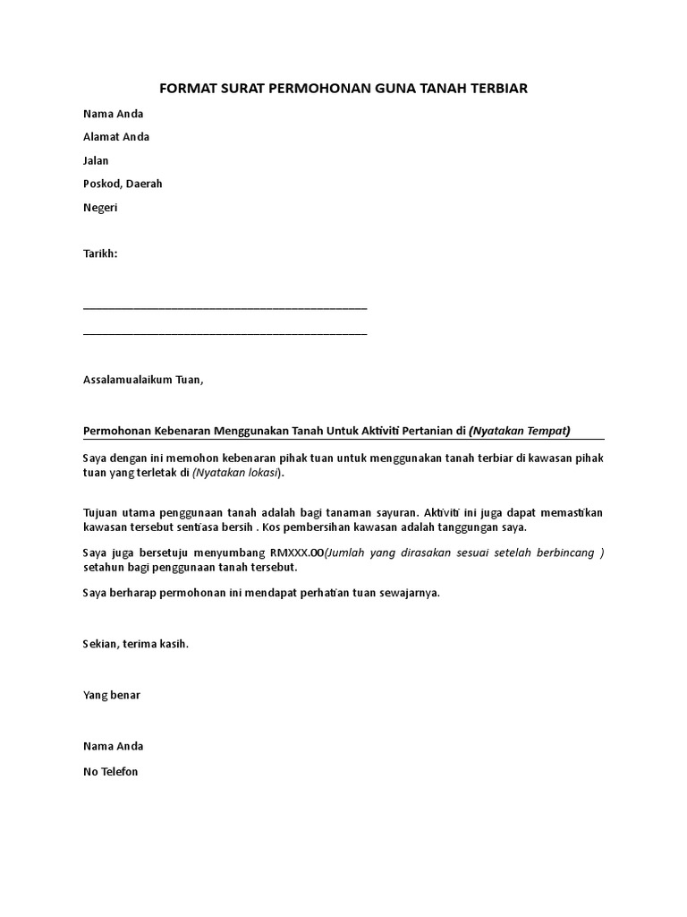 Contoh Surat Permohonan Guna Tanah Terbiar Pdf